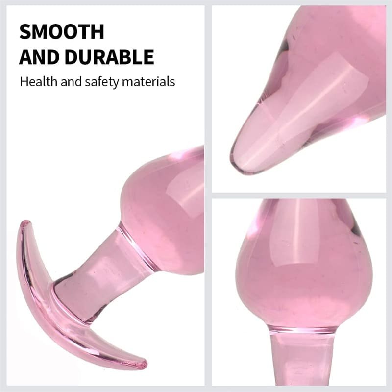 Pink Glass Butt Plug Crystal Glass Anal Plug Anal Training for Beginners