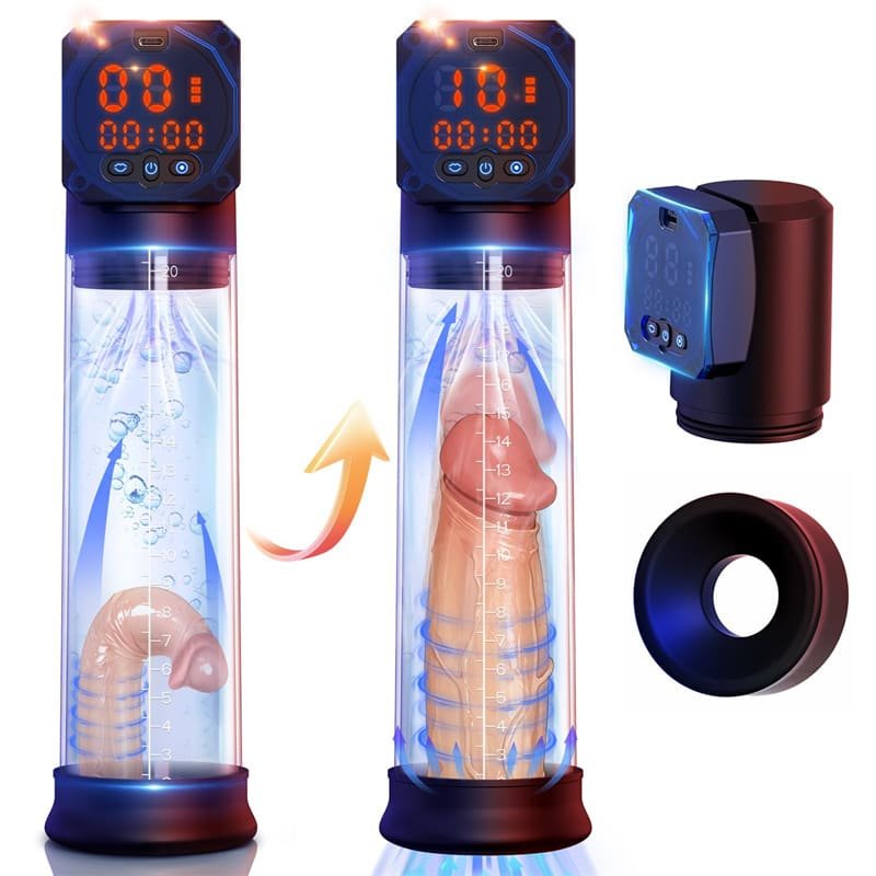 Electric Penis Pump with 10 Erection Training Modes Automatic Enlargers & Extend Pump for Men with 6 Cock Rings