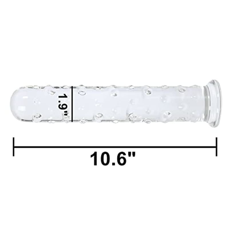 Measuring 10.6 inches in total length with a widest diameter of 1.9 inches, this Big Crystal Glass G-Spot Dildo is designed for experienced users. Please review the size carefully before purchase to ensure a confident and comfortable experience. -