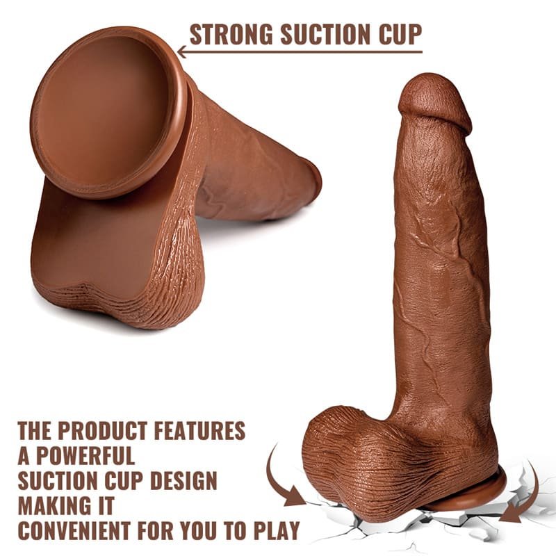 10.2inch Clar Brown Realistic Dildo Real Skin Dual Density Silicone Dildos with Strong Suction Cup for Hands-Free Play