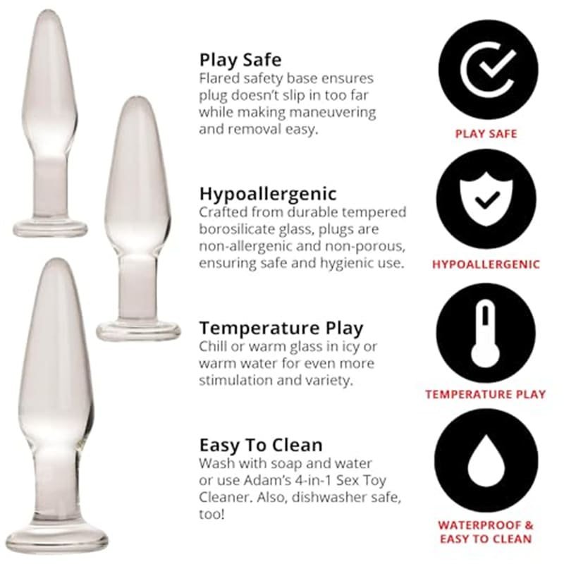 3PCS Glass Anal Plug Set, Hotsvibe Hypoallergenic Non Porous Butt Plugs for Backdoor Training and Temperature Play