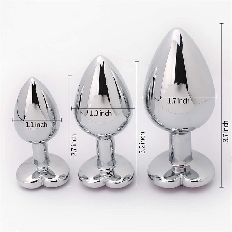 Crafted from solid stainless steel butt plug material with a smooth, mirror-like finish, these metal anal plugs feature elegant heart-shaped jeweled bases, combining durability, beauty, and comfort for long-lasting use.