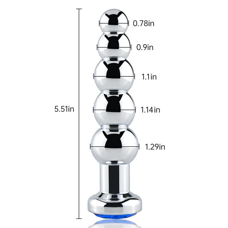 The 5.51 Inch Blue Jewelry Metal Anal Beads Butt Plug is a refined blend of pleasure and elegance. Designed with five graduated metal balls and a dazzling blue crystal accent, this anal trainer offers smooth progression, comfortable insertion, and visually striking beauty.