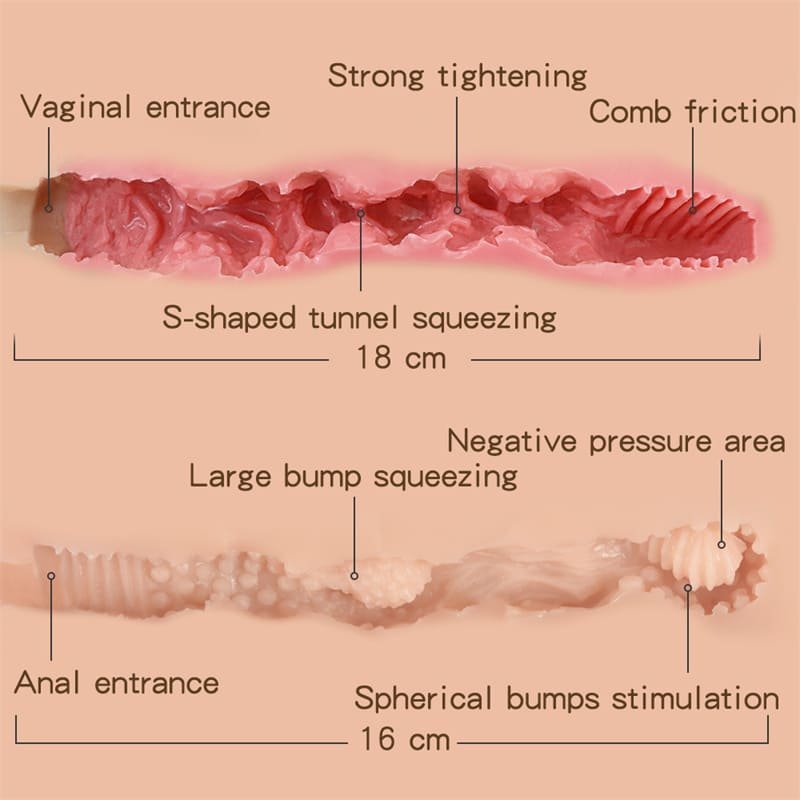 The sculpted posterior and dual internal channels make this Sex Doll Torso Masturbator a versatile and immersive option among Adult Sex Toys. Each channel features distinct internal textures, allowing users to switch experiences while maintaining a consistent, enveloping feel. The substantial weight provides added stability and realism, especially when positioned on flat surfaces.