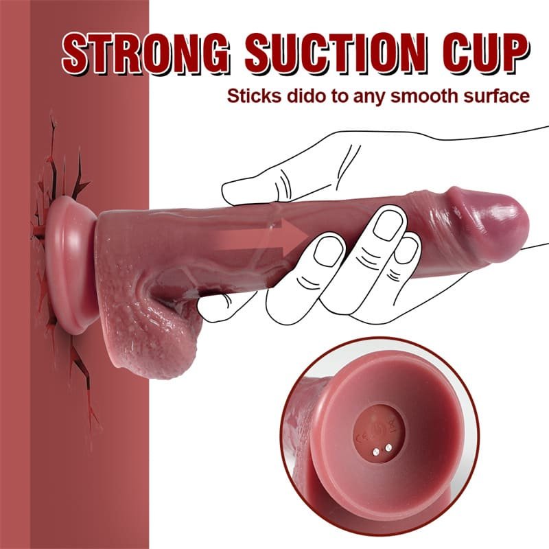 Featuring 3 thrusting speeds and 10 vibration modes, this remote control dildo vibrator allows easy customization without complicated settings. The soft liquid silicone surface and carefully shaped form give this realistic silicone dildo a natural feel, while the strong suction cup base supports stable, hands-free positioning.