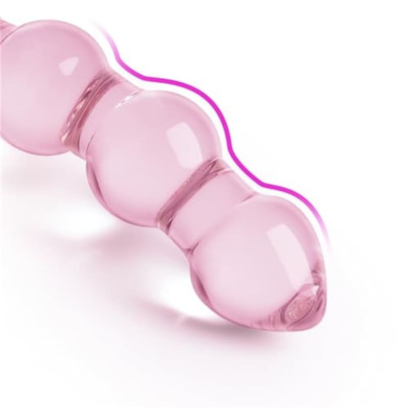 This Pink Glass Double-Ended Dildo is designed for both beginners and experienced users. One end features a single bead for easy insertion, while the opposite end includes four beads for deeper stimulation, making this Double Ended Glass Pleasure Wand perfect for exploring different sensations. -