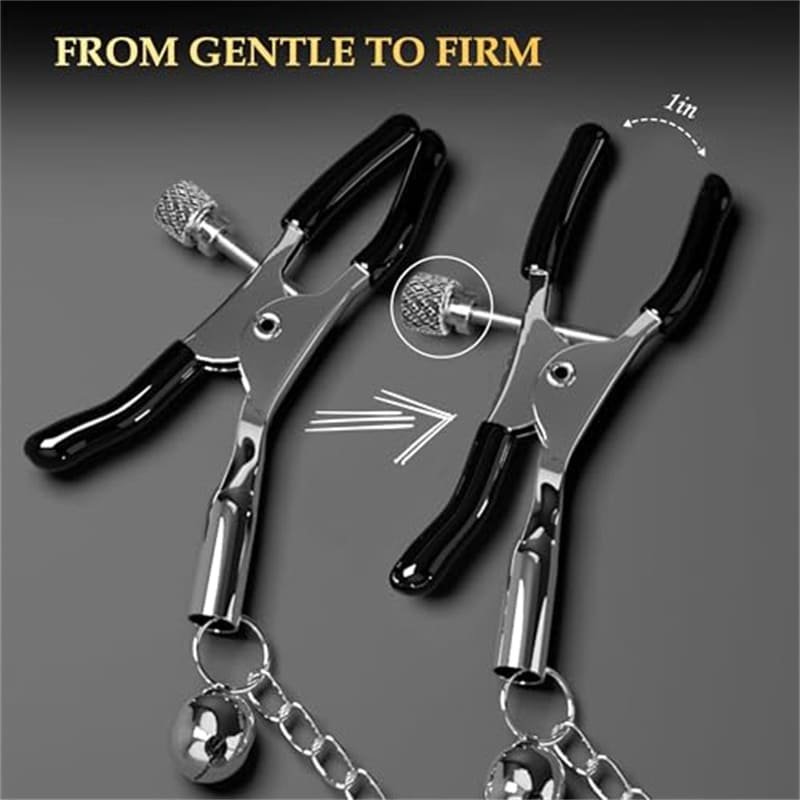 These premium BDSM Nipple Toys Adjustable Metal Nipple Clamps, designed for precise control and lasting durability. The stainless-steel construction and adjustable tension screws allow customizable pressure, making these nipple clamps for women men couples suitable for different experience levels.