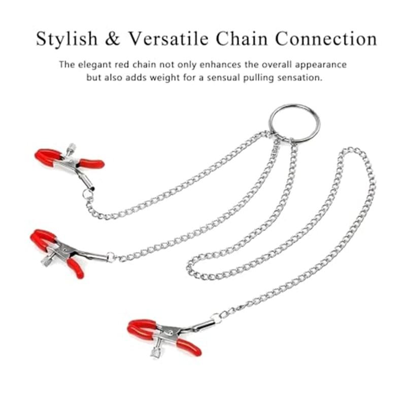 Made from durable, skin-friendly metal with a smooth red coating, this 3 head nipple clamps adult toy provides strength, adjustability, and long-term reliability. The integrated chain enhances stability while maintaining sleek visual appeal, making it a standout fetish gear accessory for women and men.