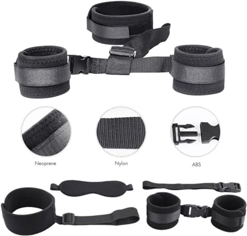 Complete with blindfold and adjustable collar, this sleek bondage set bed restraints kit delivers durability, control, and clean design. Discreetly packaged and easy to carry, the BDSM sex toys for couples set is built for privacy and reliability.