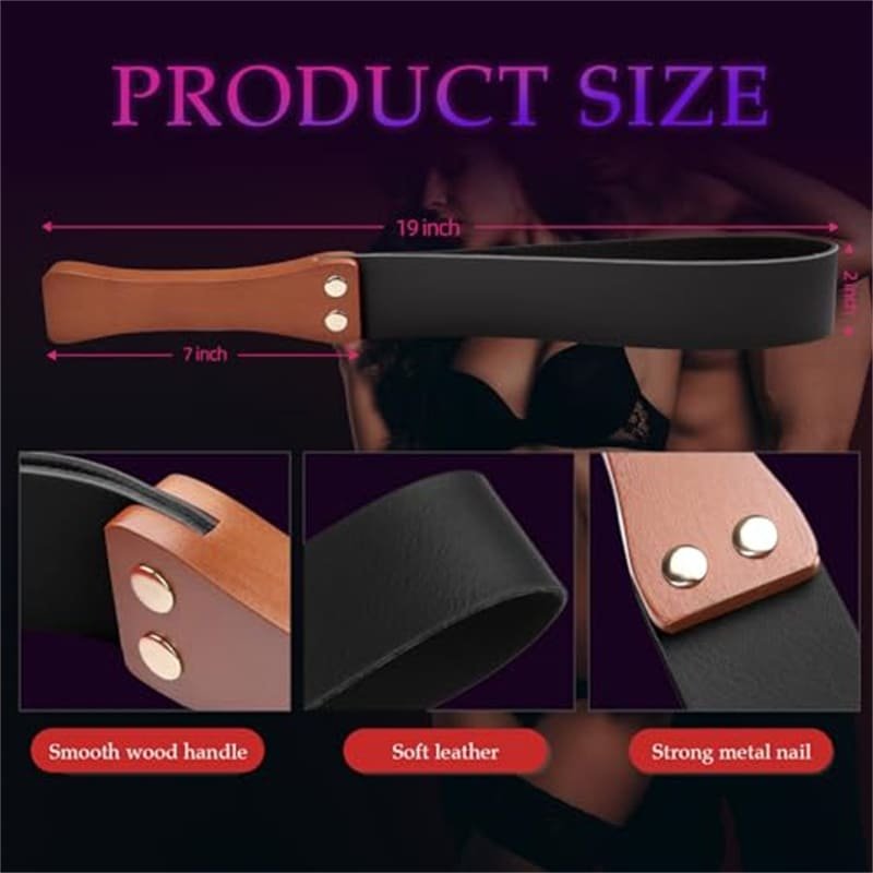 Perfect for beginners exploring BDSM paddle play and experienced users building a collection of adult role play toys, this leather spanking paddle whip delivers reliable performance and long-term durability.