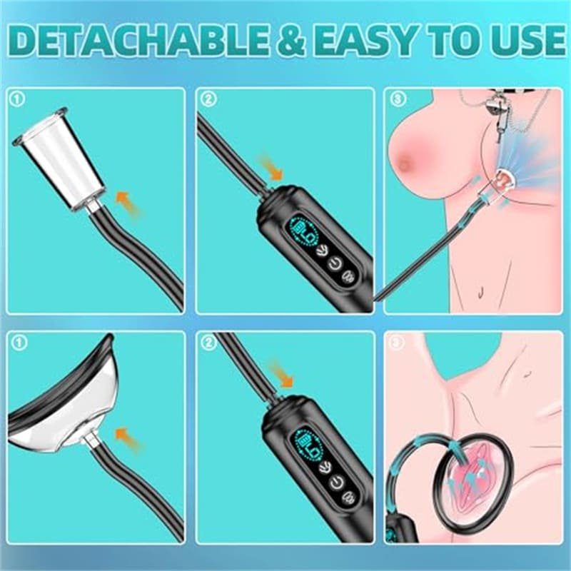 This versatile Vagina Pump Nipple Sucker Toys Set includes 2 vaginal chambers and 3 nipple cylinders to accommodate different preferences. The detachable design allows easy switching between cups and simplifies cleaning. (Note: Pump body is not waterproof; do not rinse under water.)