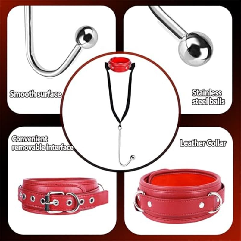 Hotsvibe BDSM Anal Hook Sex Bondage Restraint Set with Leather Chain Leash Collar Stainless Steel Anal Trainer
