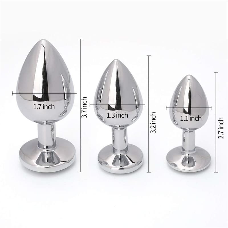Perfect for new users and training sessions, this beginner anal toys set includes three sizes: Small (2.7″x1.1″), Medium (3.2″x1.3″), and Large (3.7″x1.7″). Easily progress from a small beginner butt plug to a larger metal anal plug as your comfort increases.