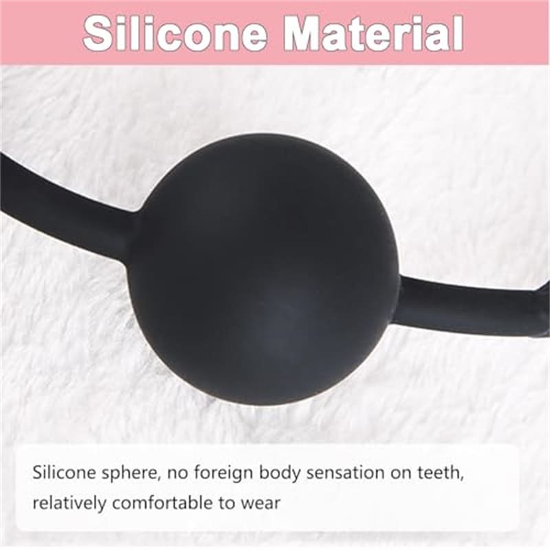 The silicone ball features a hollow structure to support airflow during wear. This breathable design enhances comfort compared to traditional solid ball gags.