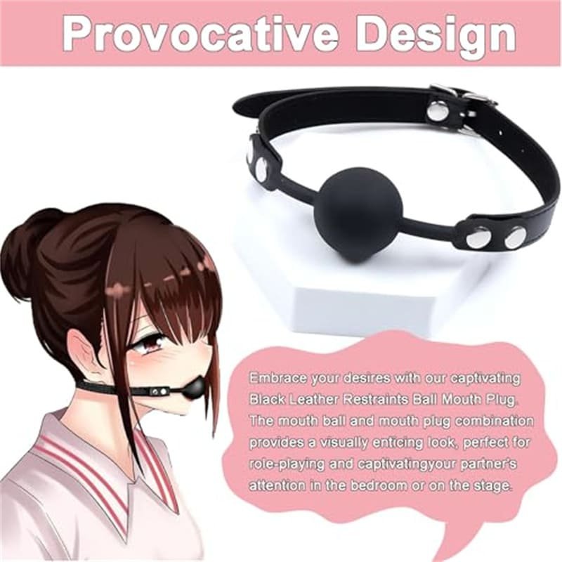 Enhance your collection with this Leather Restraints Ball Mouth Plug Silicone Bondage Ball Gag. Featuring a soft silicone ball and adjustable leather strap, this restraint accessory blends comfort, durability, and striking aesthetics.