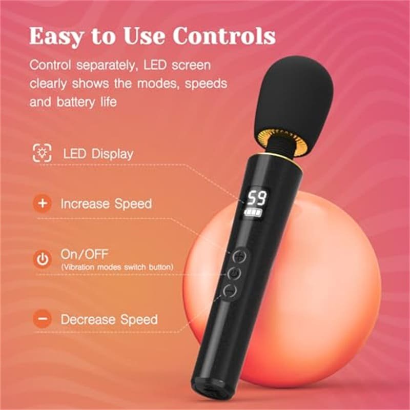 Monitor your pleasure easily with the built-in LED screen. This advanced Rechargeable Wand Vibrator with LED Display clearly shows vibration mode, speed level, and battery life—even in the dark. Designed for convenience, this Cordless Vibrator Wand Massager ensures uninterrupted enjoyment.