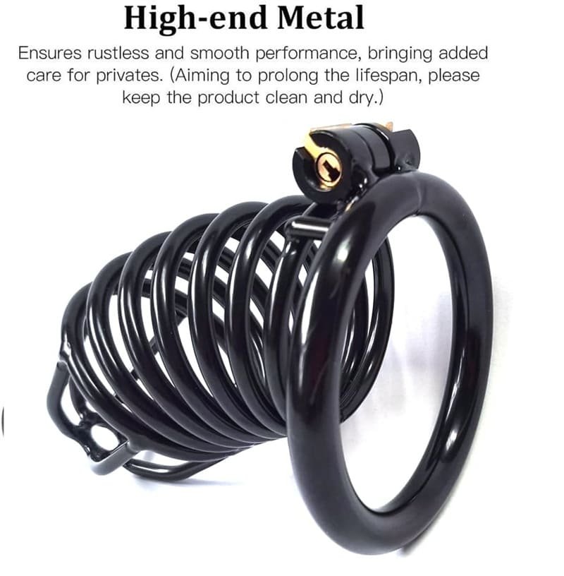 This black metal Cock Cage is crafted from premium 304 stainless steel, offering superior strength, corrosion resistance and long-lasting durability. The hand-polished surface is smooth, hypoallergenic and burr-free, making this male chastity device ideal for extended wear, BDSM play, CBT training and daily chastity control.