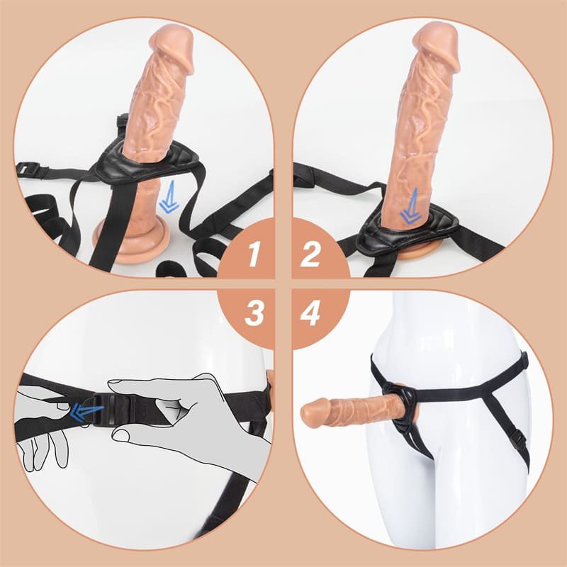 This strap on dildo harness set features a fully adjustable strap on harness with 4-point adjustment, fitting waists up to 46.5 inches. The sturdy straps keep the strap on sex toy secure and comfortable, even during active use.