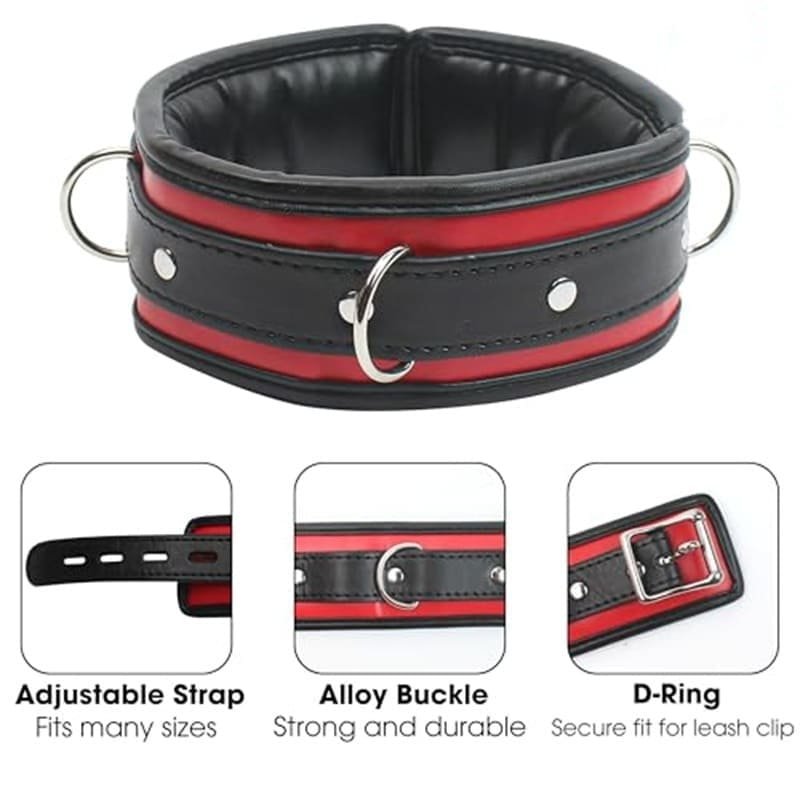 Leather Sex Collar Set for Women Sex Leashes Comfortable for (13″-18″) Neck Circumference