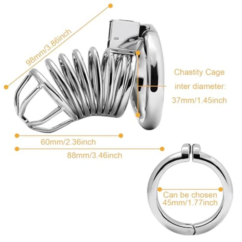 The chastity device for penis training includes removable base rings (1.76″) designed to connect firmly with the cage body. The stable structure helps maintain positioning and control, supporting consistent male chastity training and abstinence use.